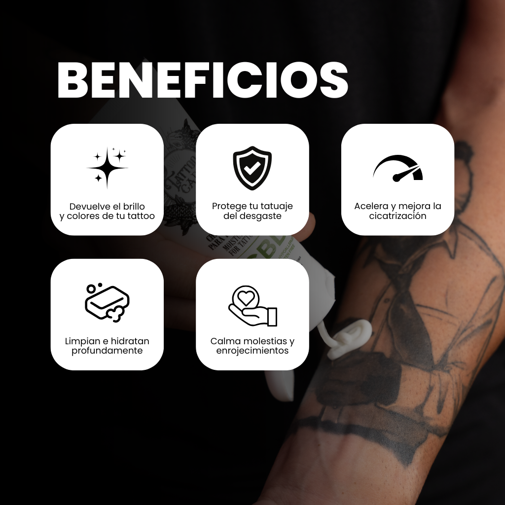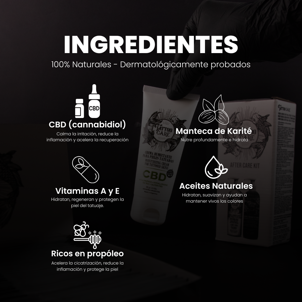 Con el Combo Premium Kit After Care + Crema CBD, vas a darle a tu tatuaje lo que necesita para mantenerse vibrante, sano y con los colores que elegiste el primer día.