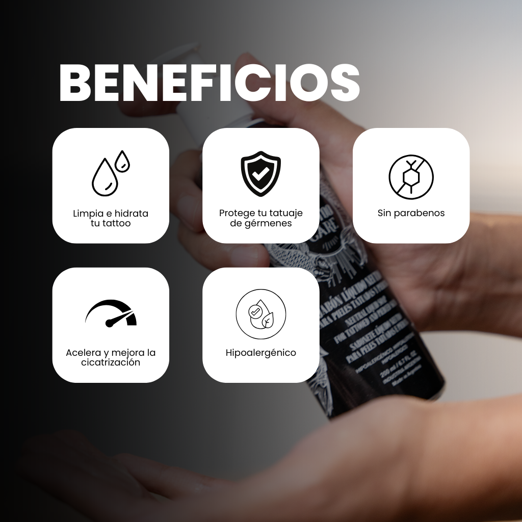 Por eso, creamos el Jabón Líquido Neutro Tattoo Care 200ml , la base perfecta para que cada tatuaje dure más y se vea mejor.
